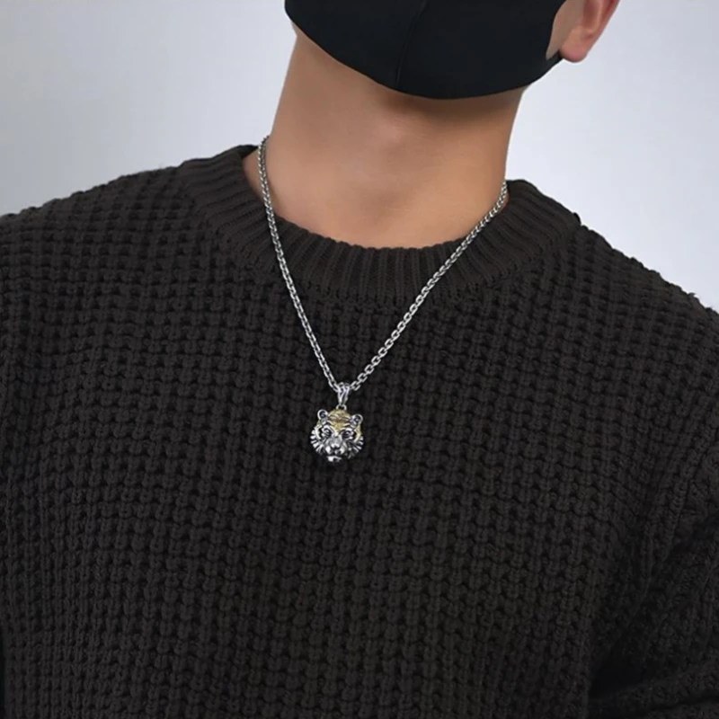 1 Stück Vintage-Halskette für Männer und Frauen, modischer Trend, Tigerkopf-Anhänger, Schmuck