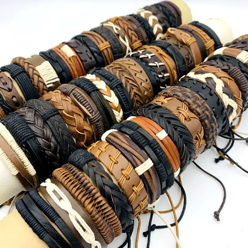 10/20/30/50/100PCs Leder Manschette Armbänder Handgemachte Retro Armreif Armbänder Schwarz/Braun Mode schmuck Party Geschenk Großhandel Lot