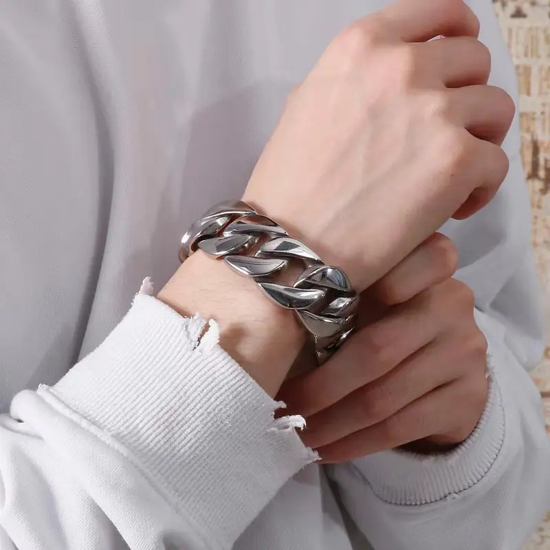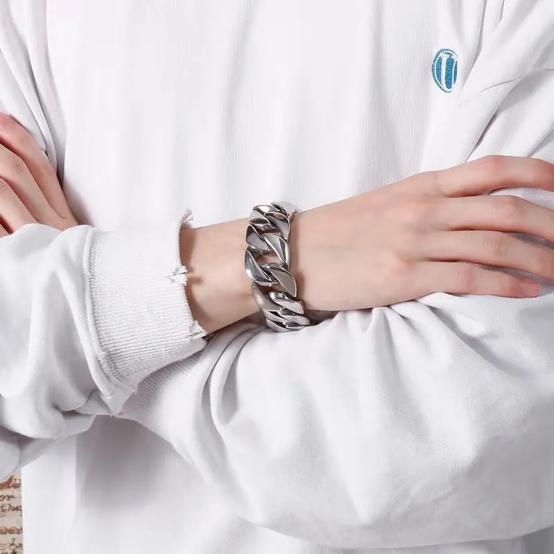 20/26/31MM 316L Edelstahl Curb Kubanisches Armband Riesige Schwere Silber Farbe Ton Schmuck Herren Frauen Biker Bike Kette Armbänder