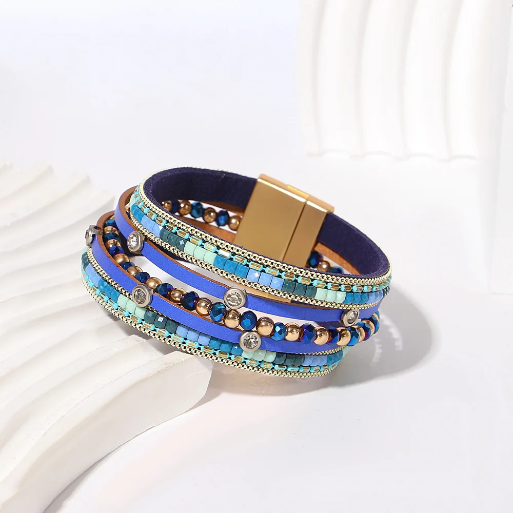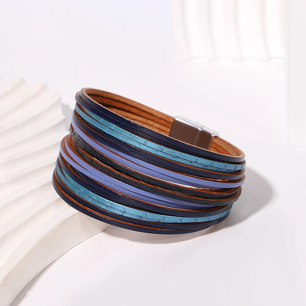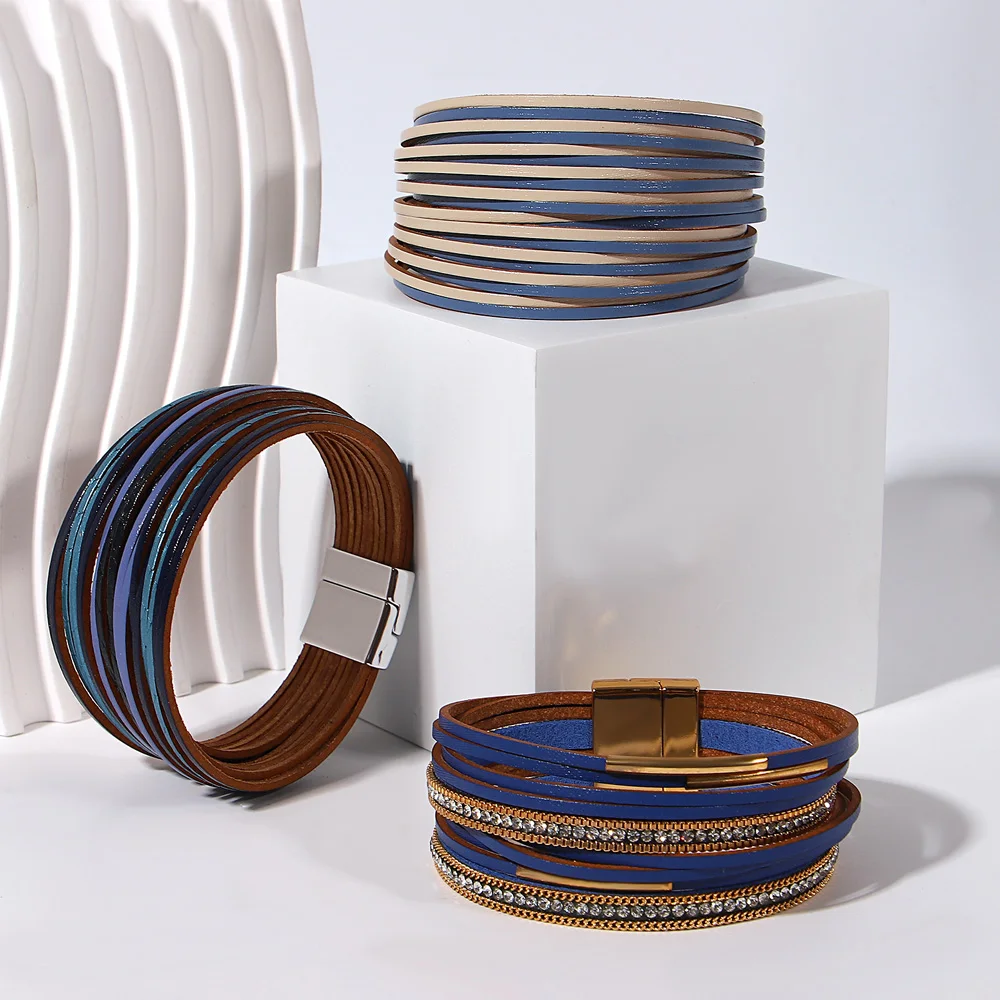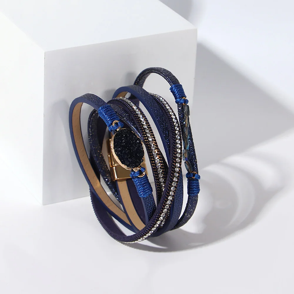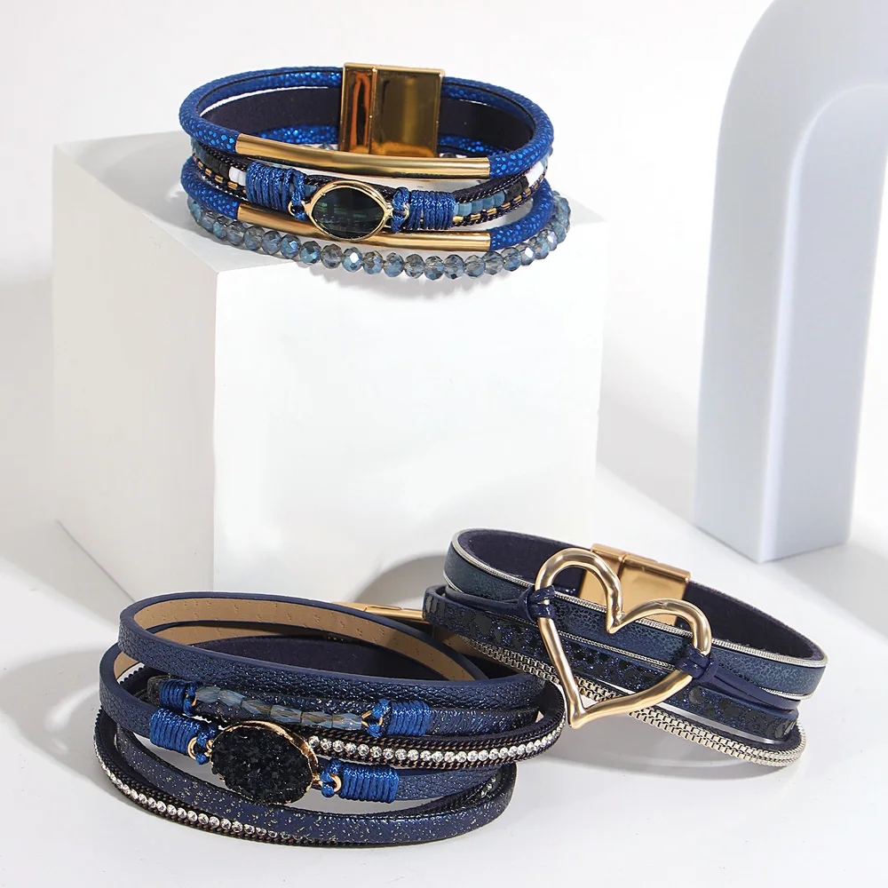 Fashion Braclet: Boho Multilayer Wrap Blue Leather Bracelets