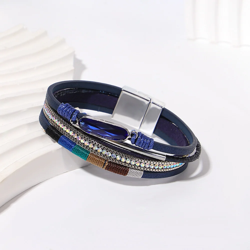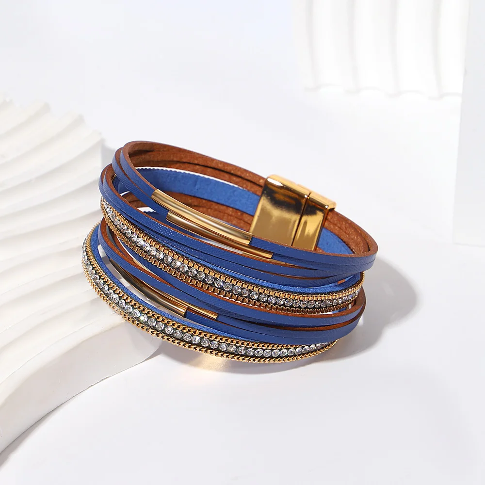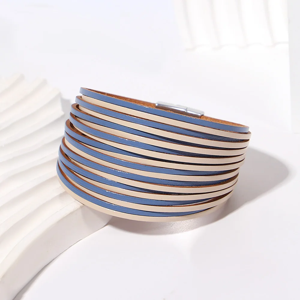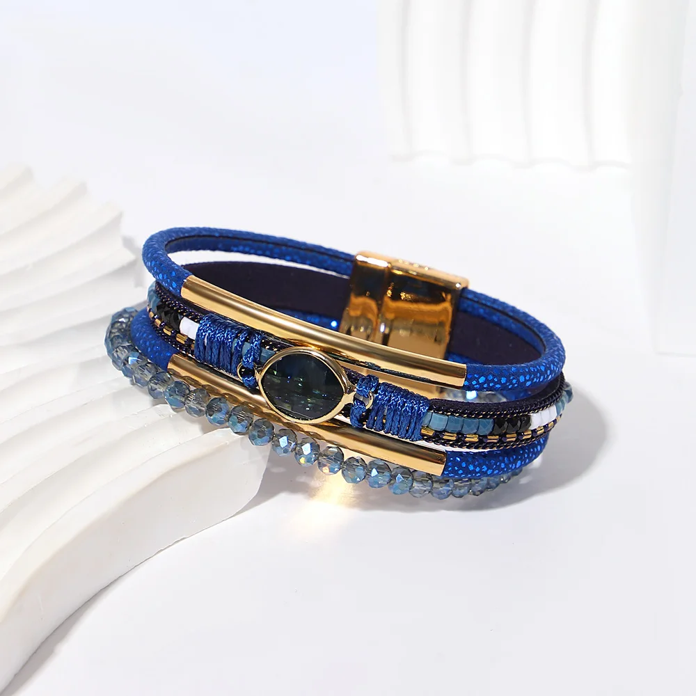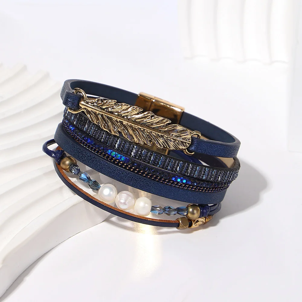 Fashion Braclet: Boho Multilayer Wrap Blue Leather Bracelets