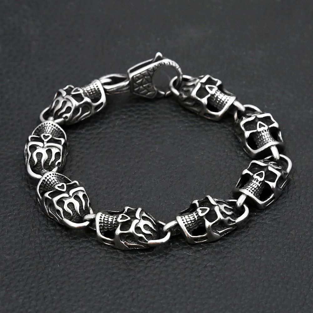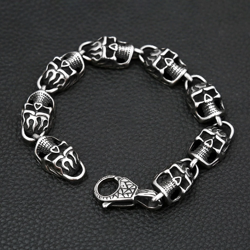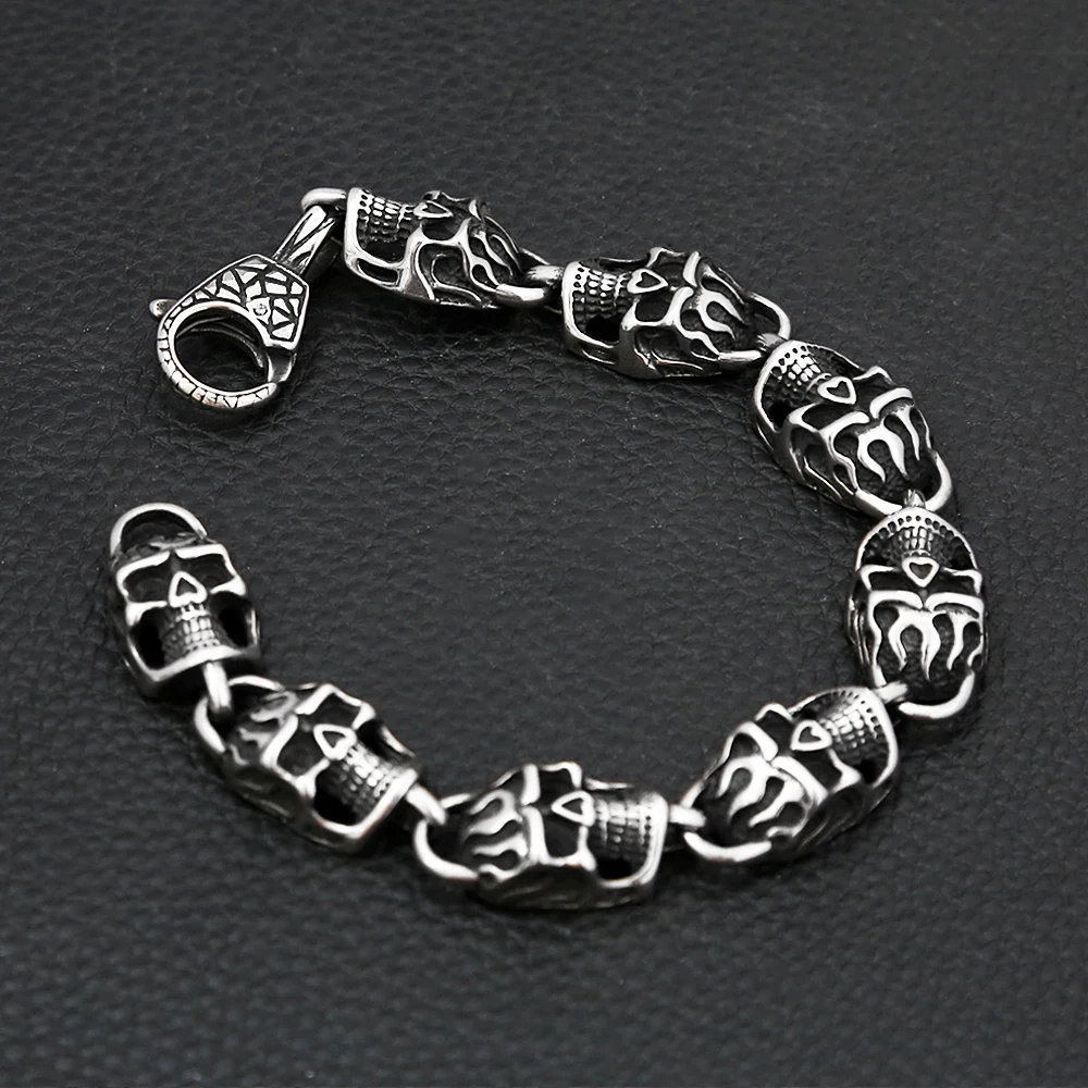 Gothic Vintage Edelstahl Schwarz Schädel Armband Für Männer Hip Hop Biker Kühlen Skeleton Armreifen Charme Partei Schmuck Dropshipping