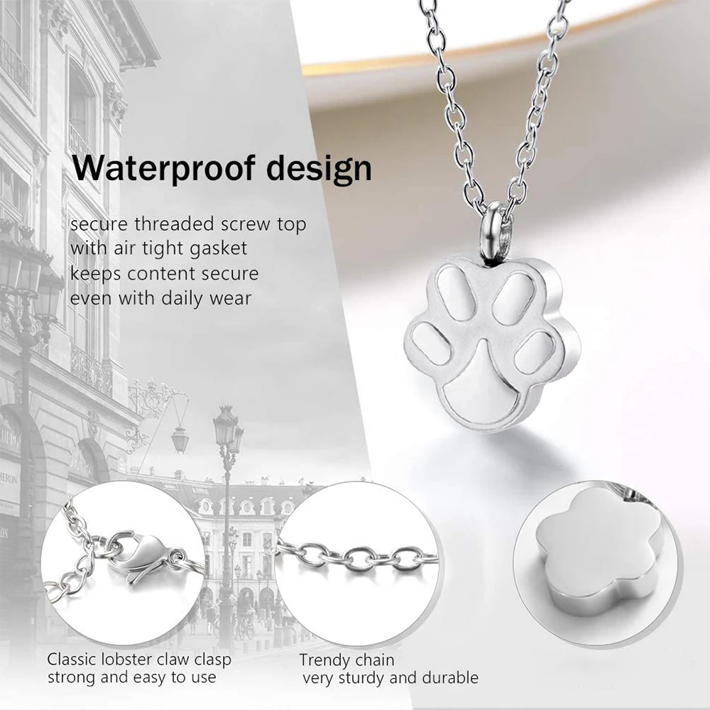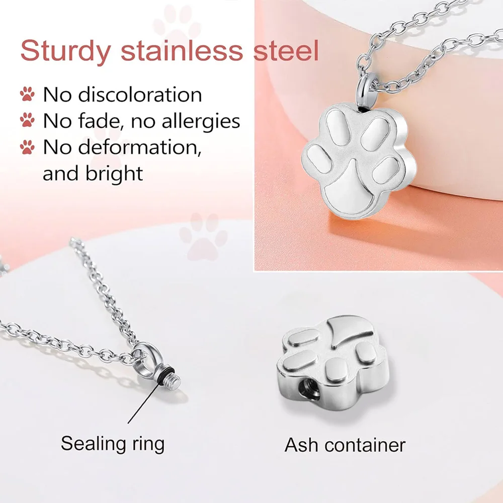 Haustier-Urnen-Halskette für Asche, Anhänger, Pfotenabdruck, Haustier-Urnen-Halskette, Gedenk-Andenken-Schmuck für die Asche von Haustieren/Hunden/Katzen