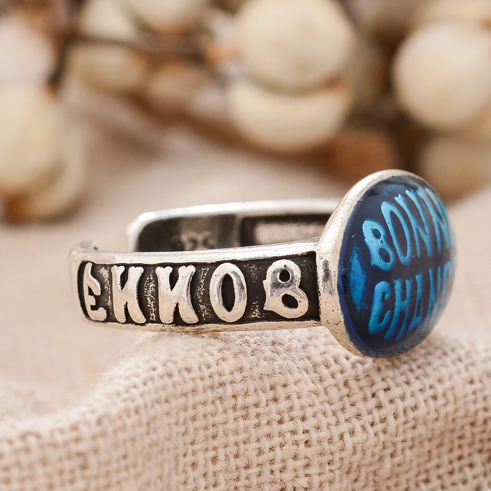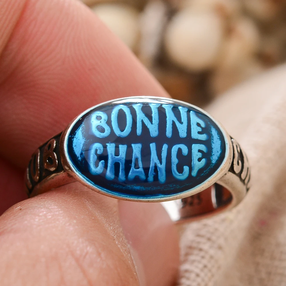 Heißer Verkauf Elegante Farbige Tropfen Glasur Bonne Chance Brief Thai Silber Weibliche Party Ring Schmuck Für Frauen Neue Jahr Geschenke