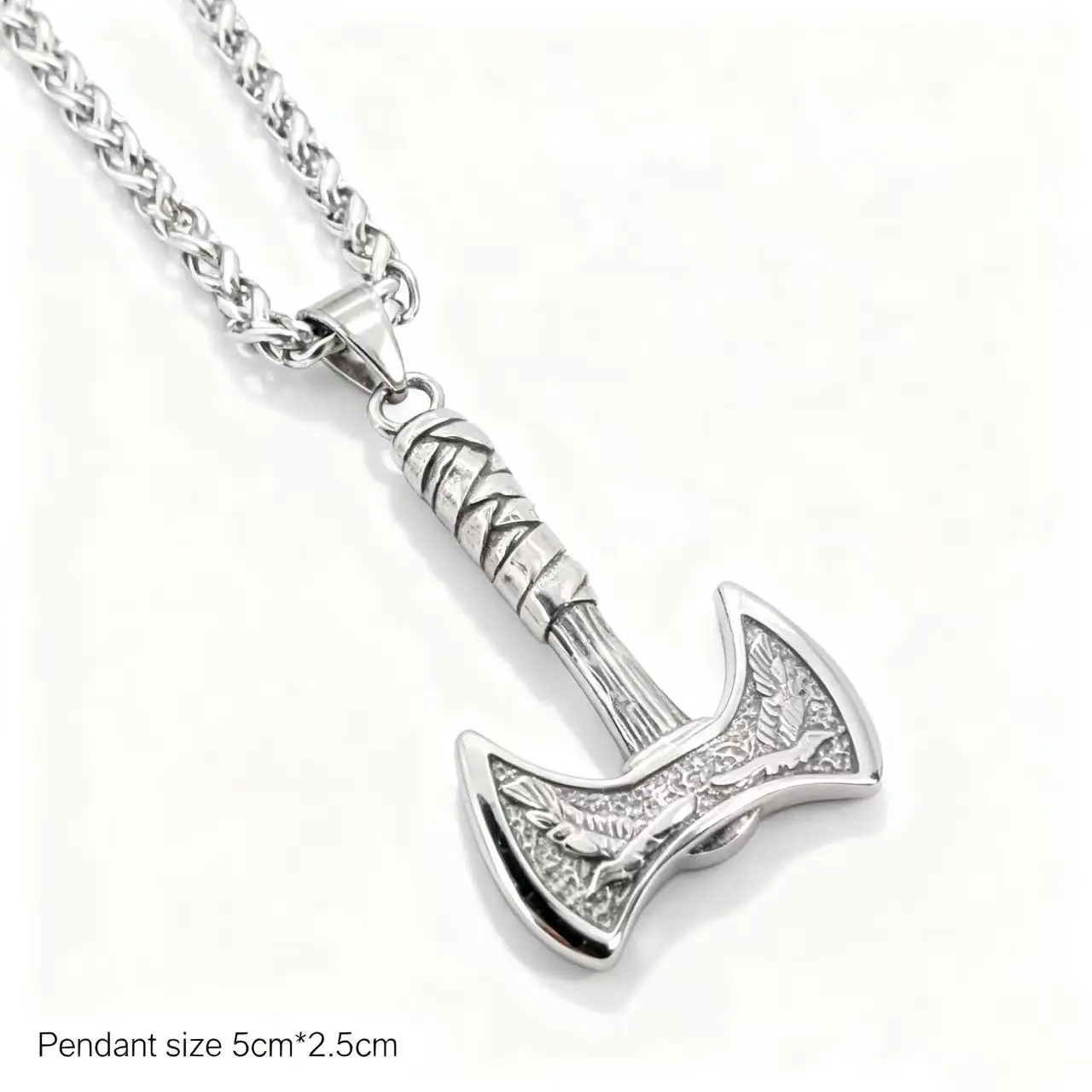 HNSP 316L Edelstahl Viking Axt Anhänger Halskette Für Männer Punk Stil Schmuck Zubehör Männliche Geschenk