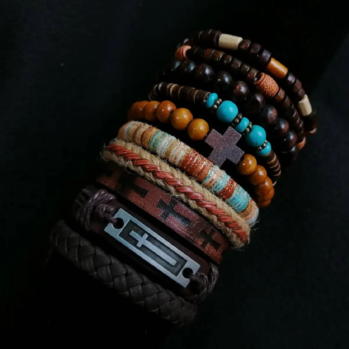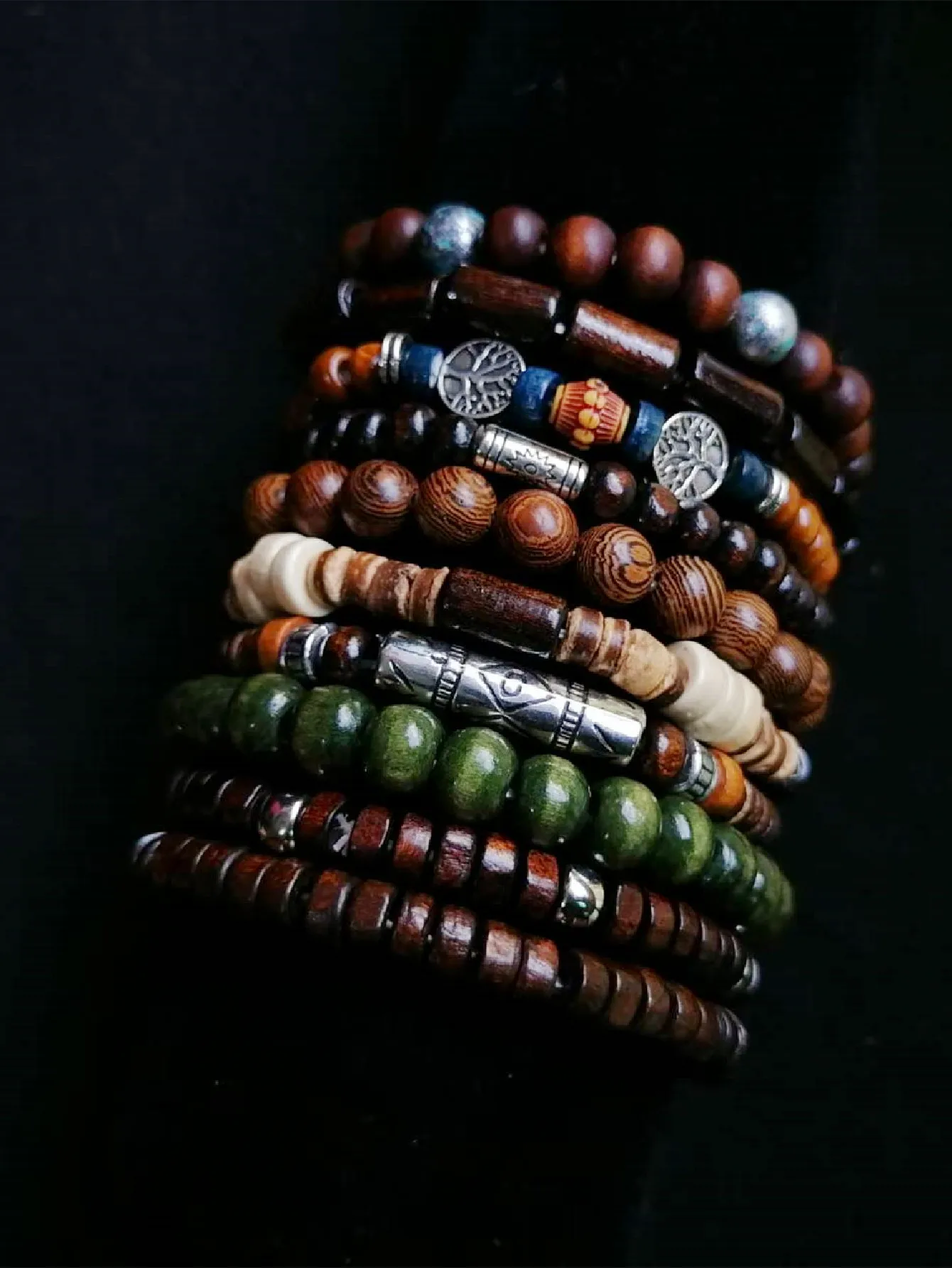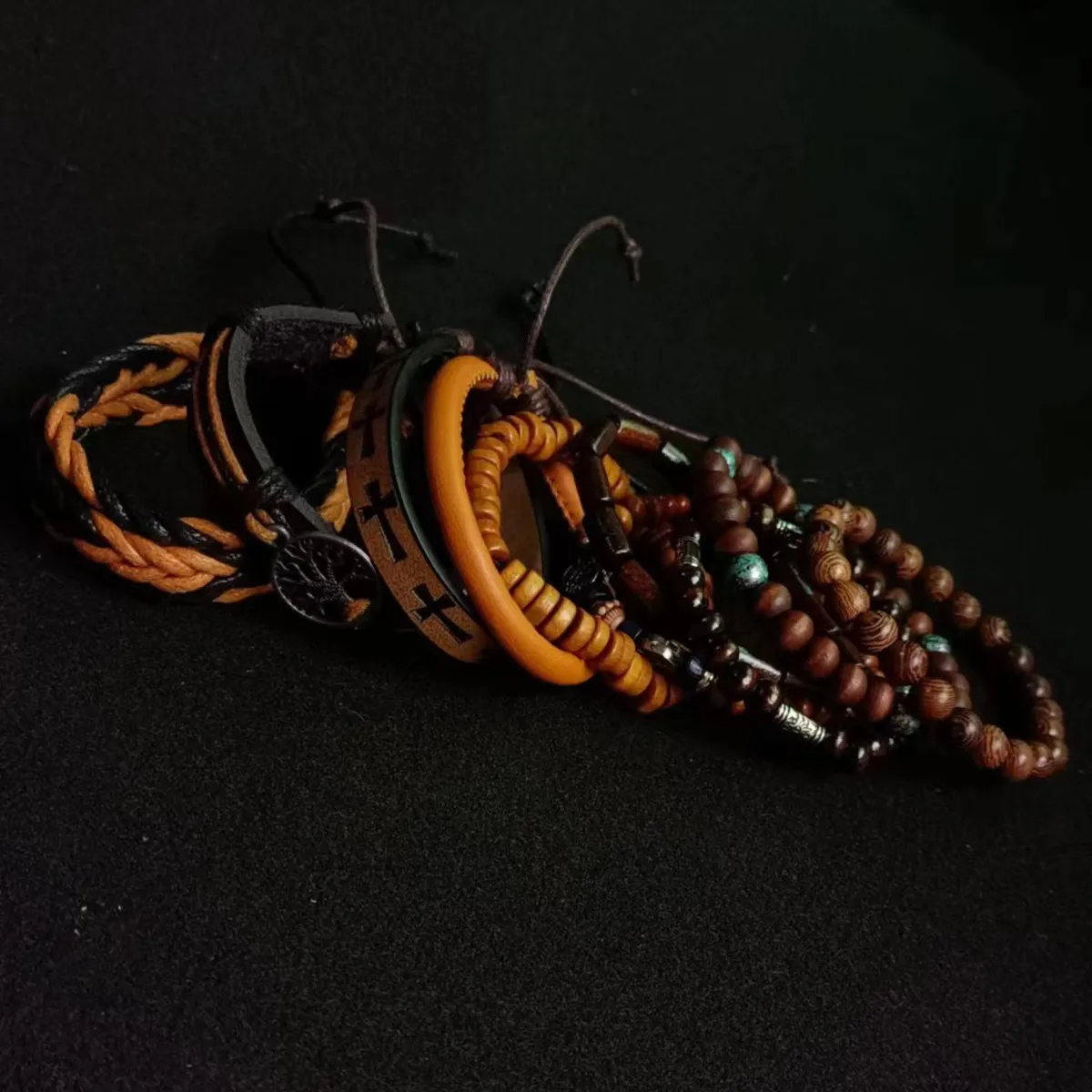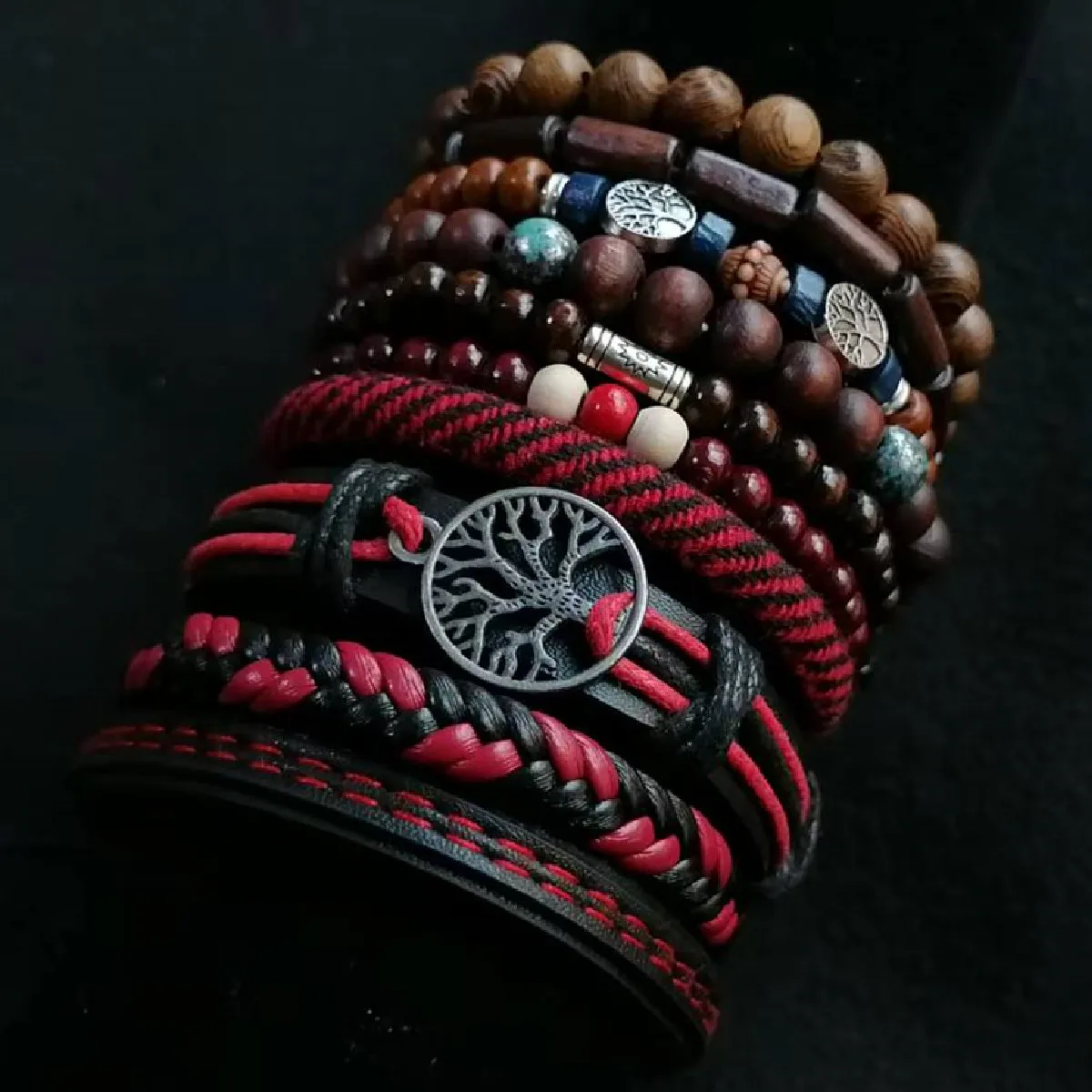 Khaki Baum 10 Teile/satz Schwarz Wrap Woven Mode Handgemachte Männer Armbänder Männliche Frauen Leder Armbänder Männer Armreif Großhandel Schmuck