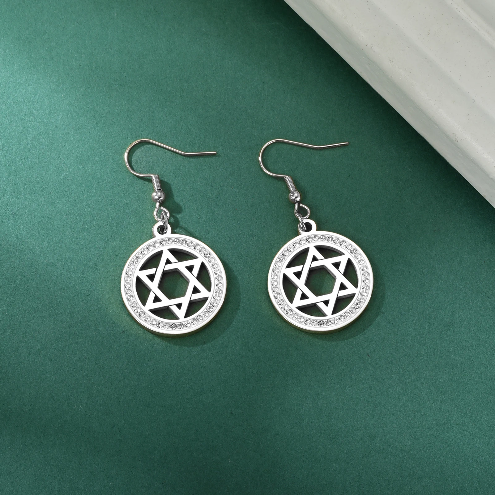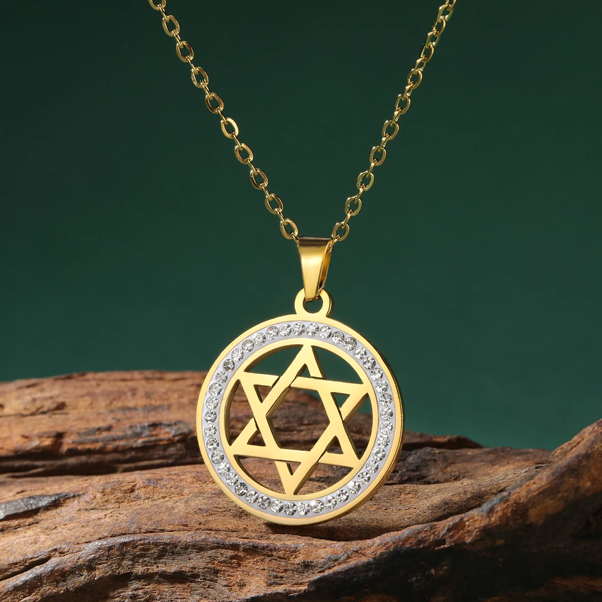 LIKGREAT Stern von David Edelstahl Vintage Halskette klar Zirkon runde Anhänger Halsketten Schmuck Hochzeits geschenk für Frauen Männer