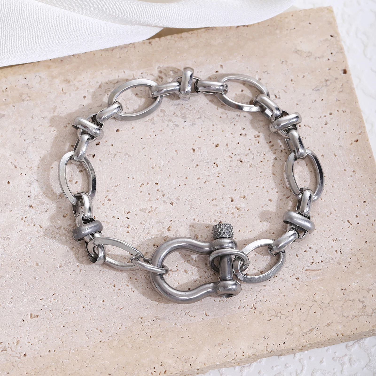 Pferdeschuh-Knoten-Armband für Männer und Frauen, Edelstahl, minimalistisches Silberkettenarmband, Schnalle, abnehmbare Armbänder, Schmuck, Geschenk