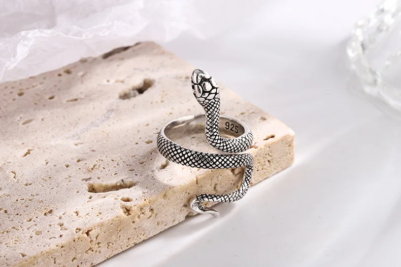 Retro Thai Silber Wicklung Schlangenform 925 Sterling Silber Schmuck Persönlichkeit Dominierendes Tier Exquisite Öffnungsringe R295