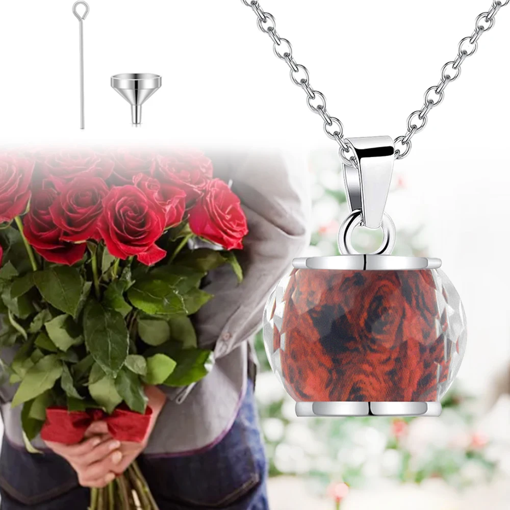 Rose Blume Einäscherung Urne Halskette für Asche Edelstahl Denkmal Einäscherung Schmuck Andenken Anhänger Halskette für Frauen Mädchen