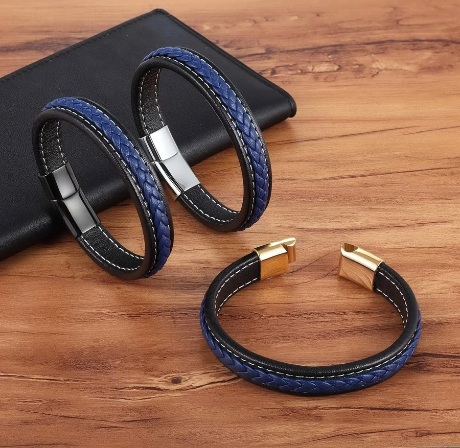 TYO Edelstahl Leder Armreifen Magnetische-schließe Geflochtene Trendy Männer Armband Armband Charme Männlichen Handgelenk Band Geschenke Großhandel