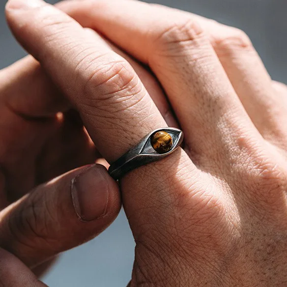 VENTFILLE 925 Sterling Silber Ring für Frauen Tigerauge Stein Retro Punk Rock Einstellbare Schmuck Geschenk Dropshipping