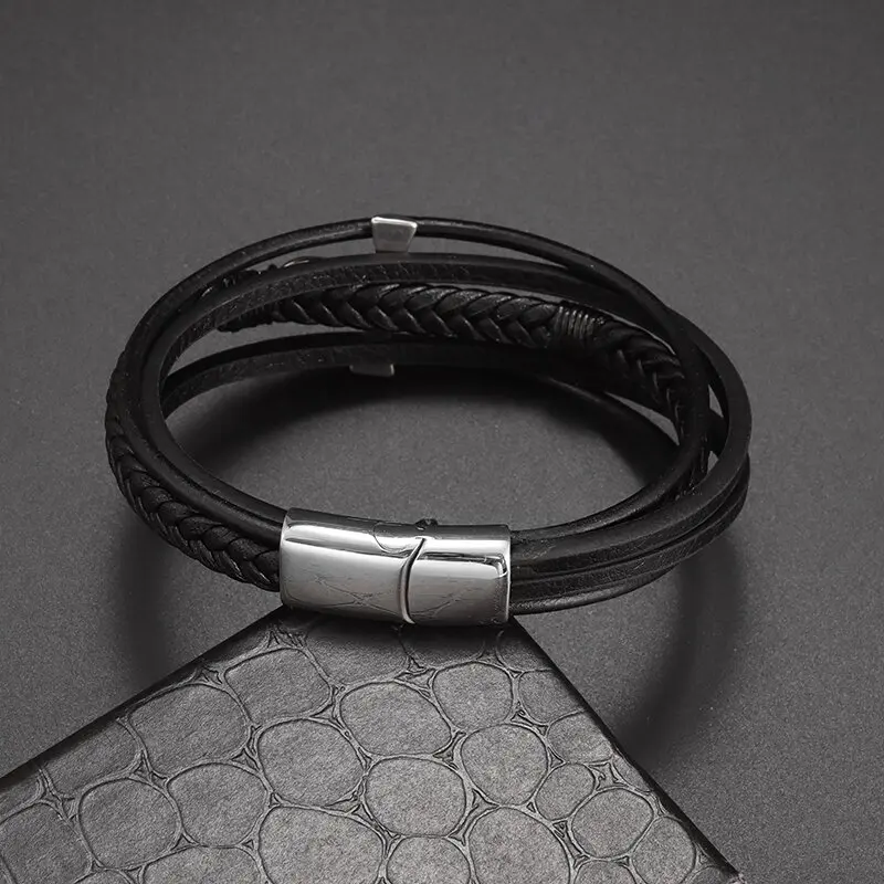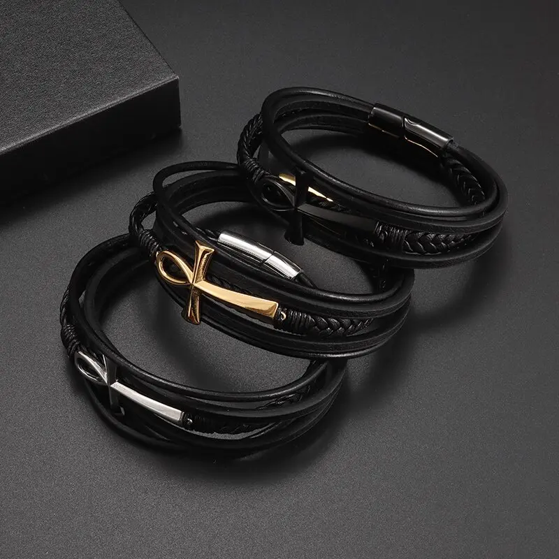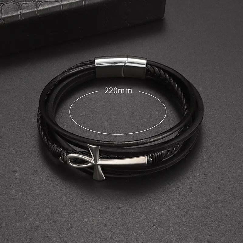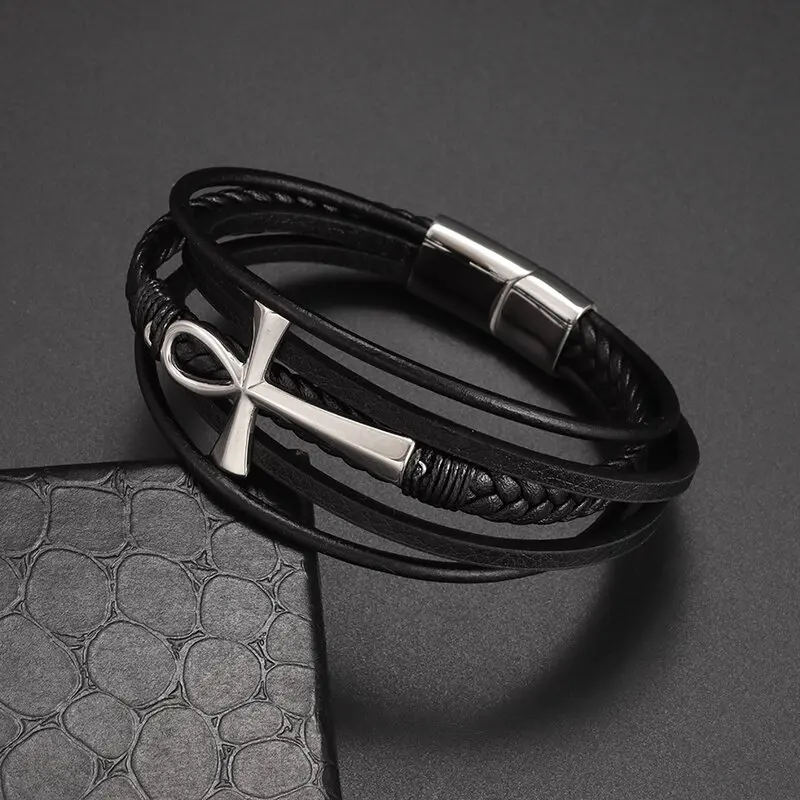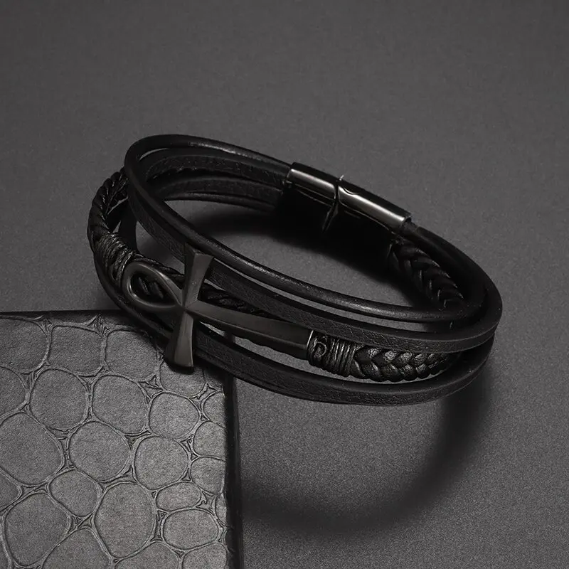 Vintage handgewebtes umweltfreundliches Leder-Kreuzarmband mit Magnetverschluss, modischer Anhänger für Herren, religiöser Amulett-Schmuck