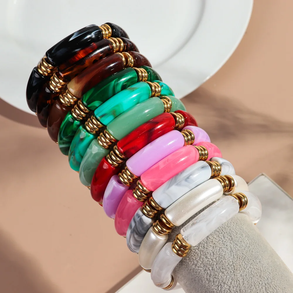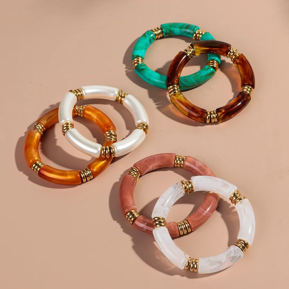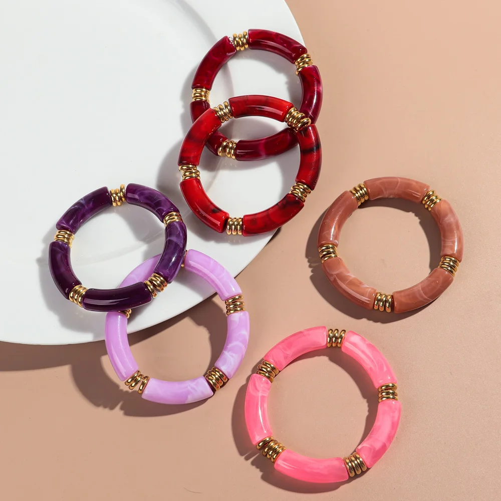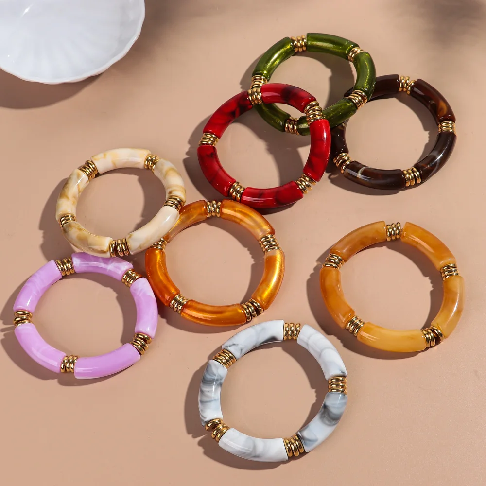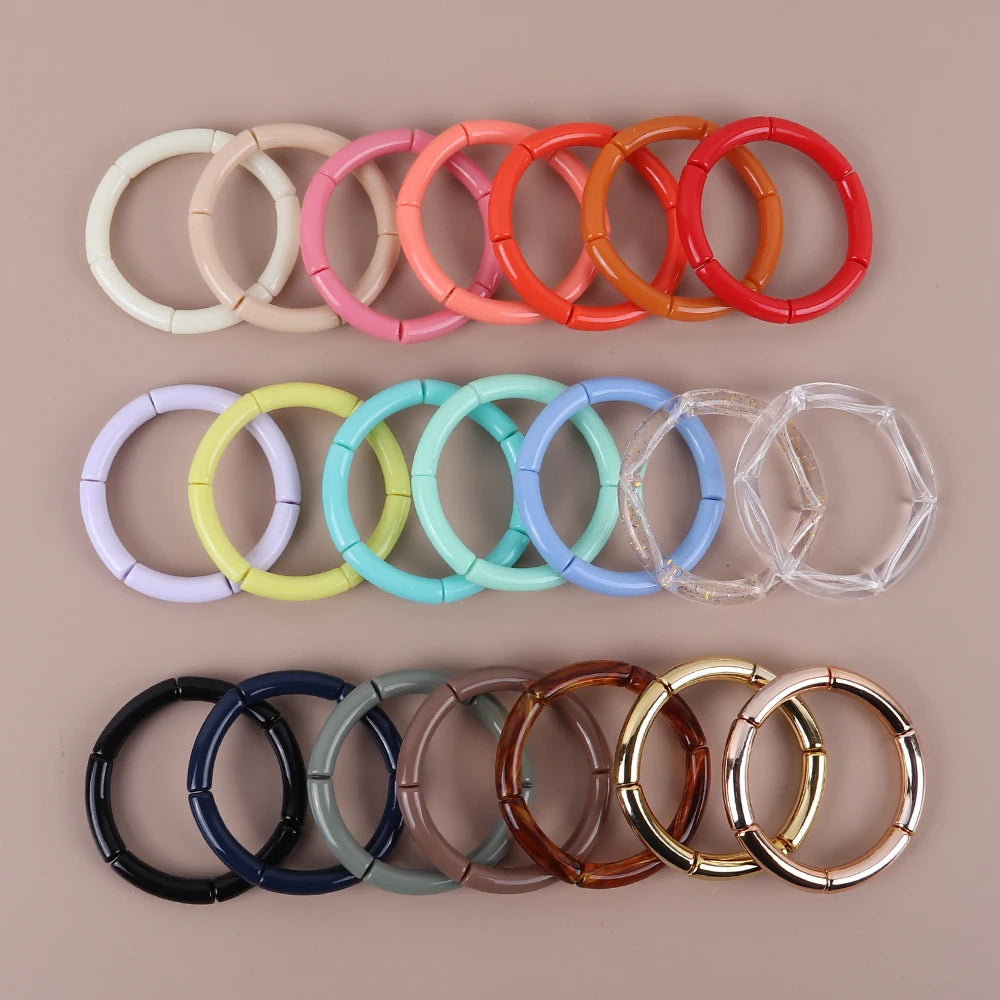 2Pcs Trendy Colorful Acrylic Bamboo Bracelets: Jelly Color Stretch Resin Beads Cuff Charm Bracelets & Bangles Jewelry