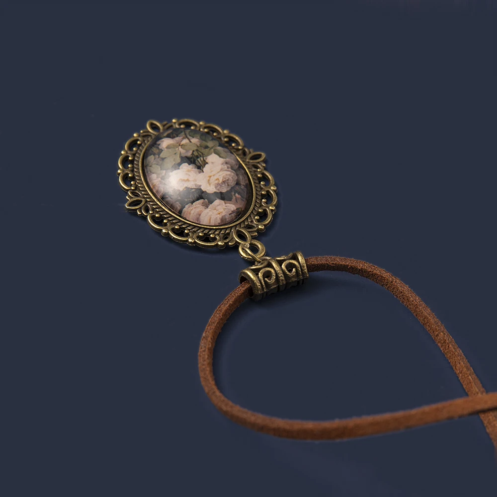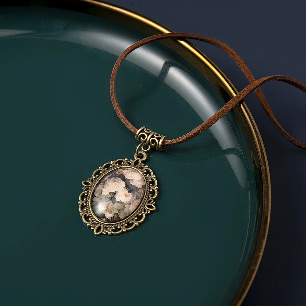 Vintange Weiß Rose Blumen zeit gem Anhänger Halskette Leder Seil Kette Halskette Frauen Modeschmuck SX-25