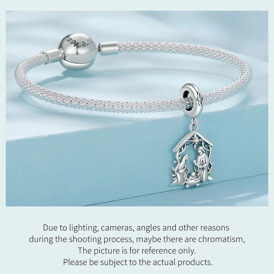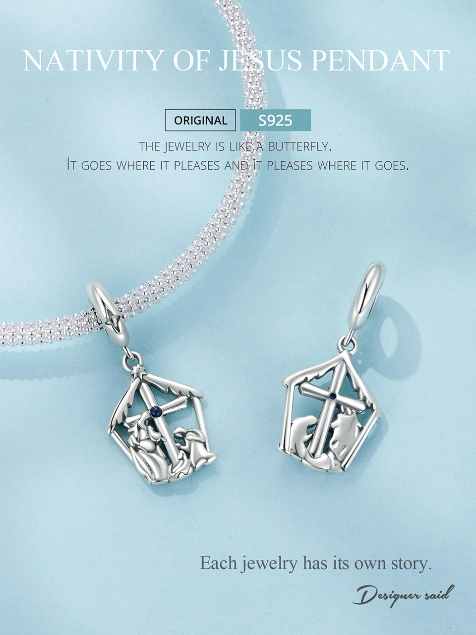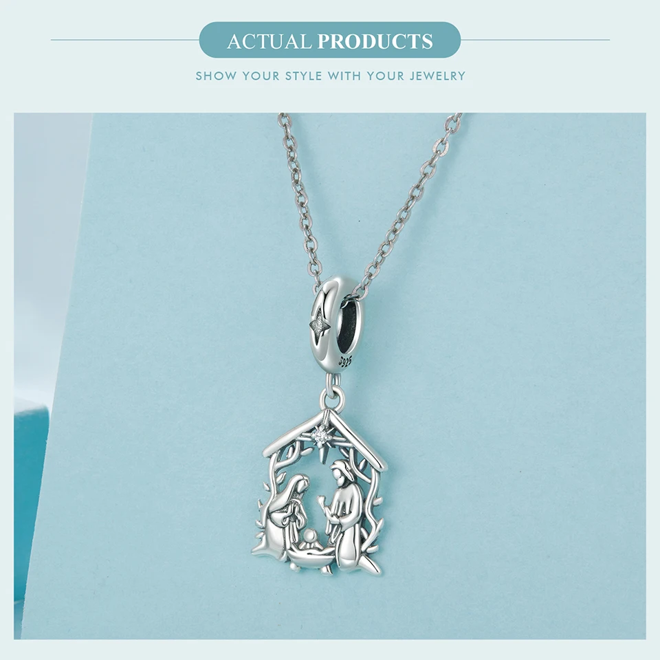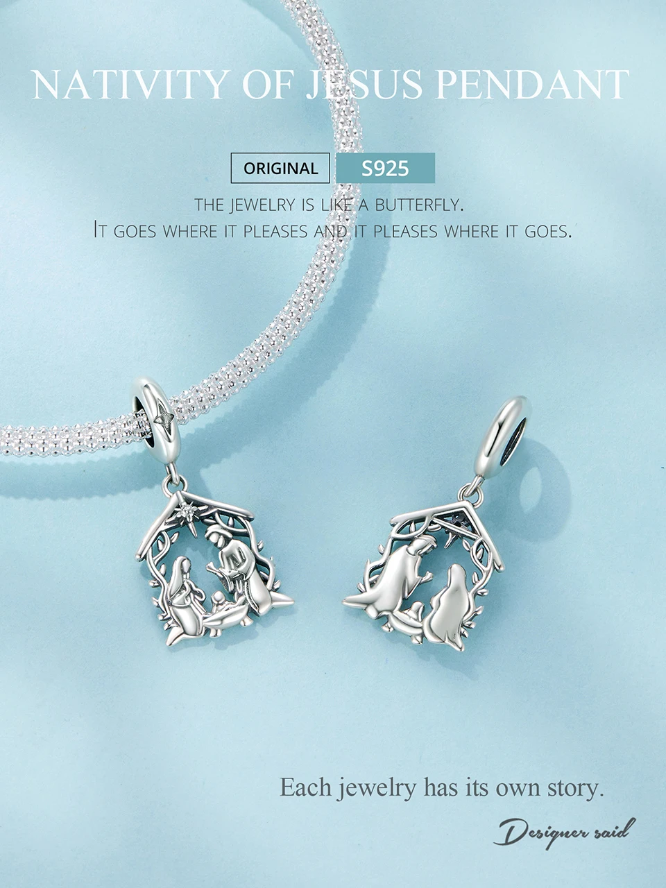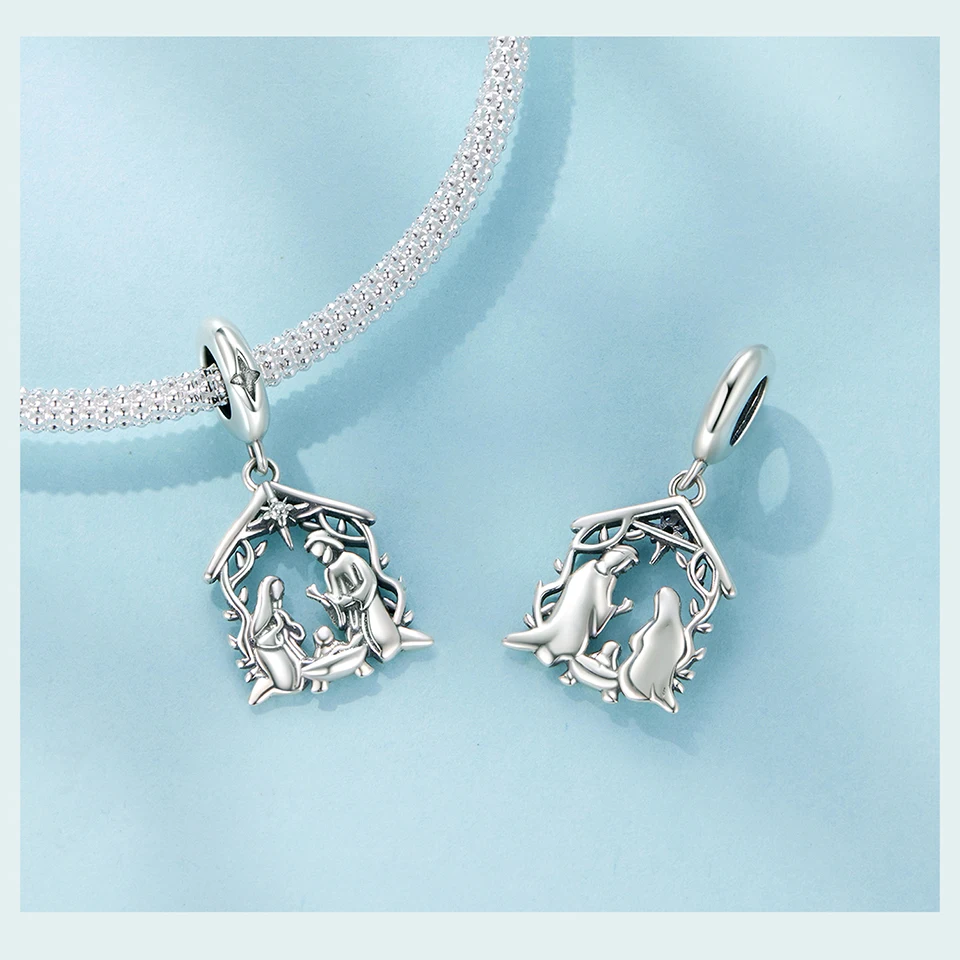 WOSTU Anhänger „Jesus-Krippe“ aus 925er-Sterlingsilber, „Die Geburt Jesu“, passend für Armbänder, Halsketten, DIY, einzigartiges Geschenk