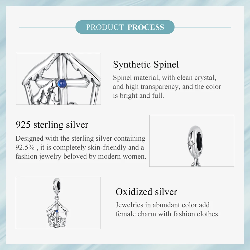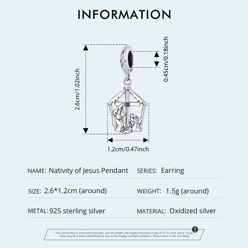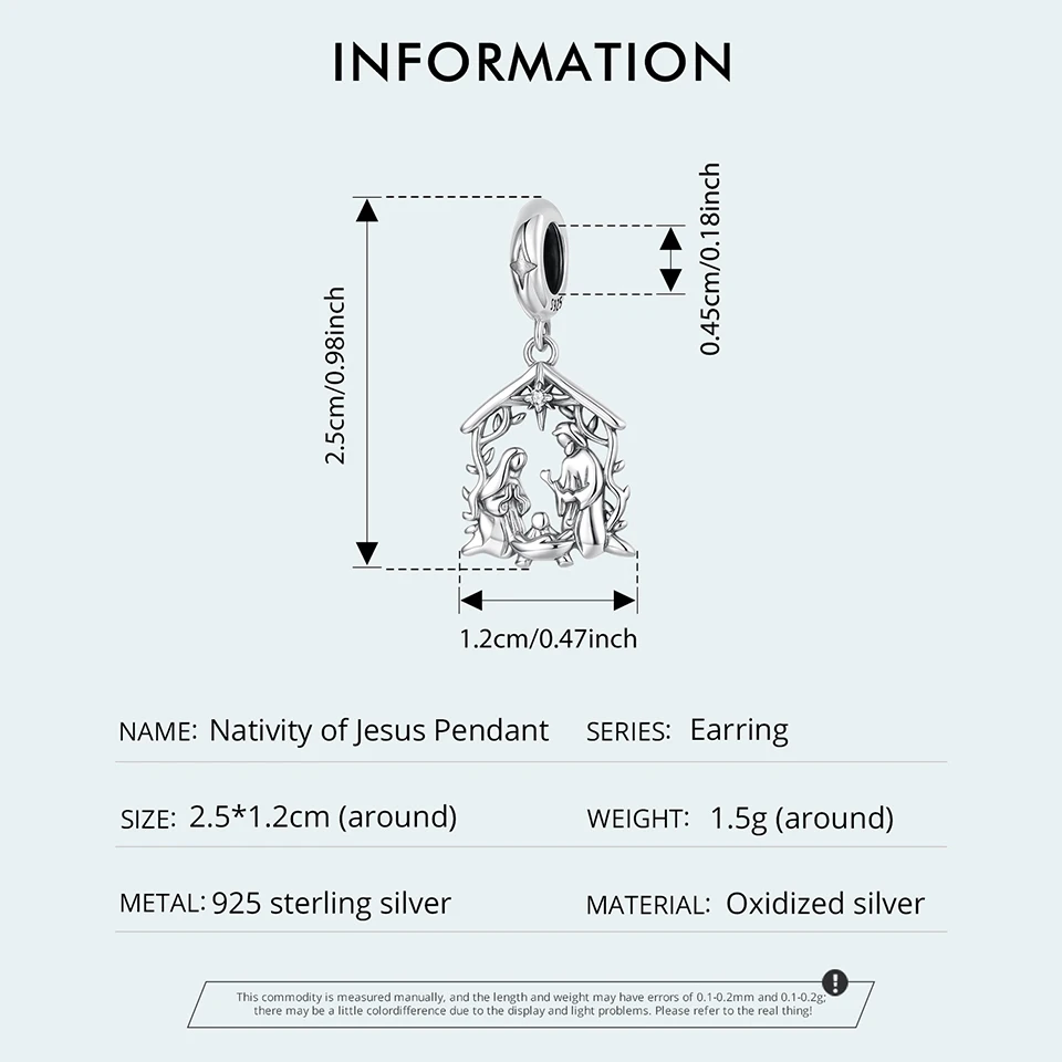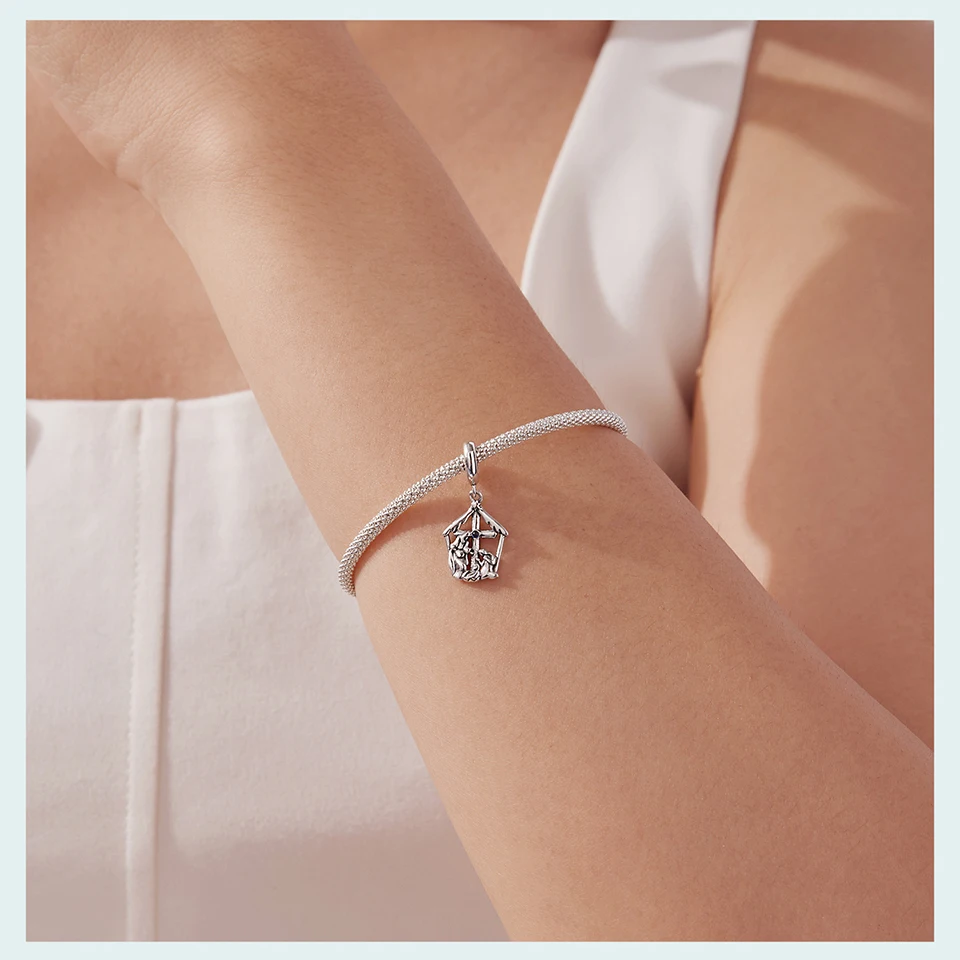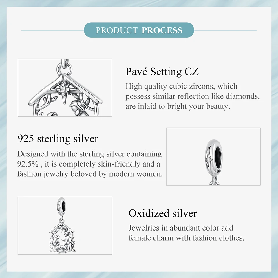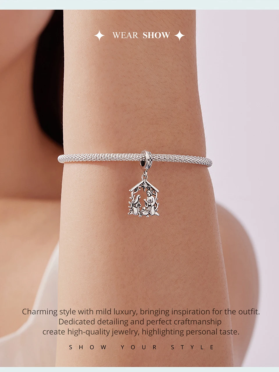 WOSTU Anhänger „Jesus-Krippe“ aus 925er-Sterlingsilber, „Die Geburt Jesu“, passend für Armbänder, Halsketten, DIY, einzigartiges Geschenk